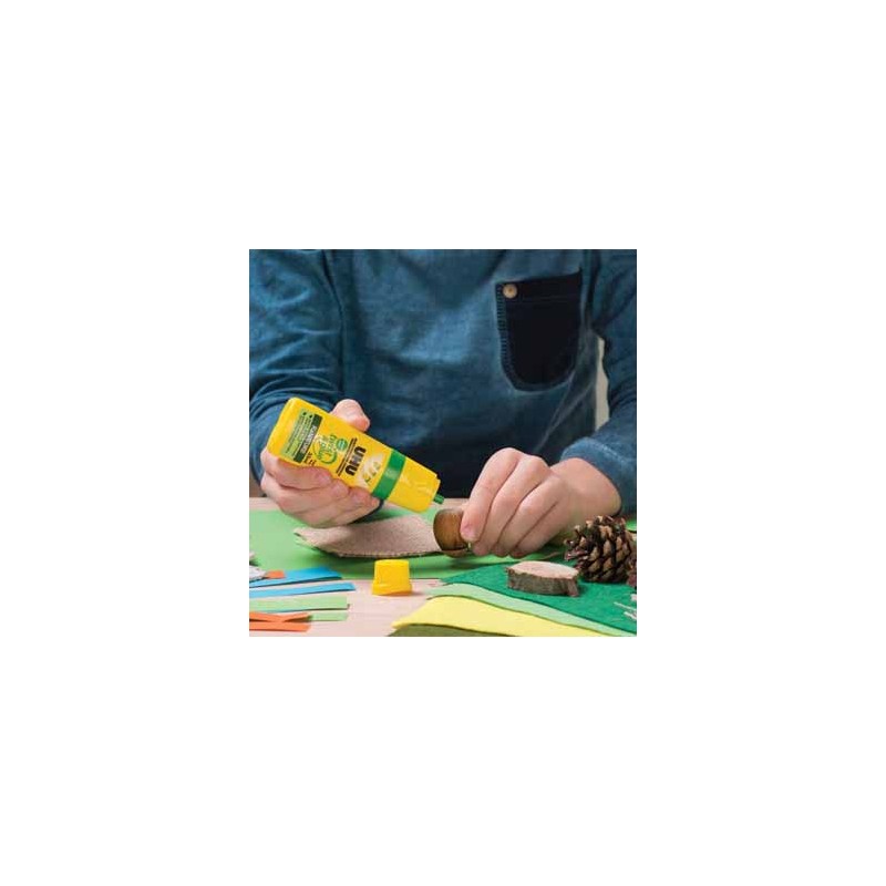Cola sem solventes multiusos num frasco de plástico macio e prático de matérias primas 88% de origem vegetal. Poupa recursos fósseis, reduz as emissões de CO2 e é reciclável. O aplicador de rodar único de 3 posições permite uma colagem precisa por pontos, linhas e superfícies. A cola é feita à base de materiais 70% de origem natural e é dermatologicamente testada. Ideal para uma gama alargada de aplicações em casa, na escola e no infantário, no escritório, para trabalhos de artesanato e modelismo, etc. É lavável com sabão e recarregável.