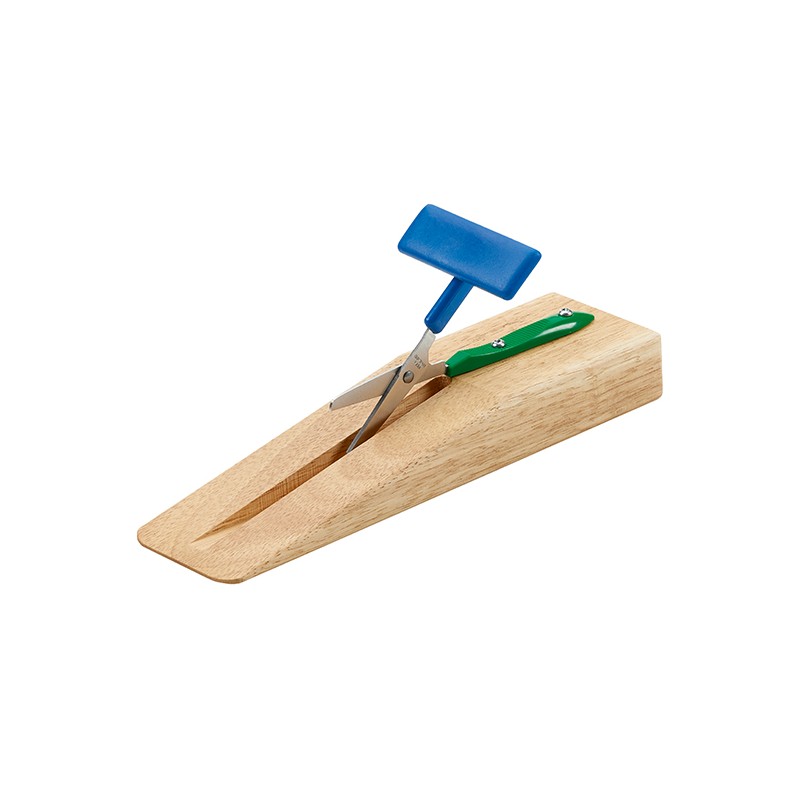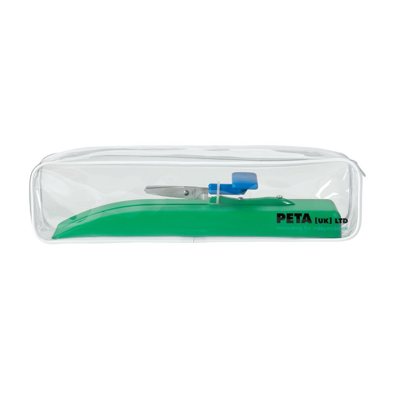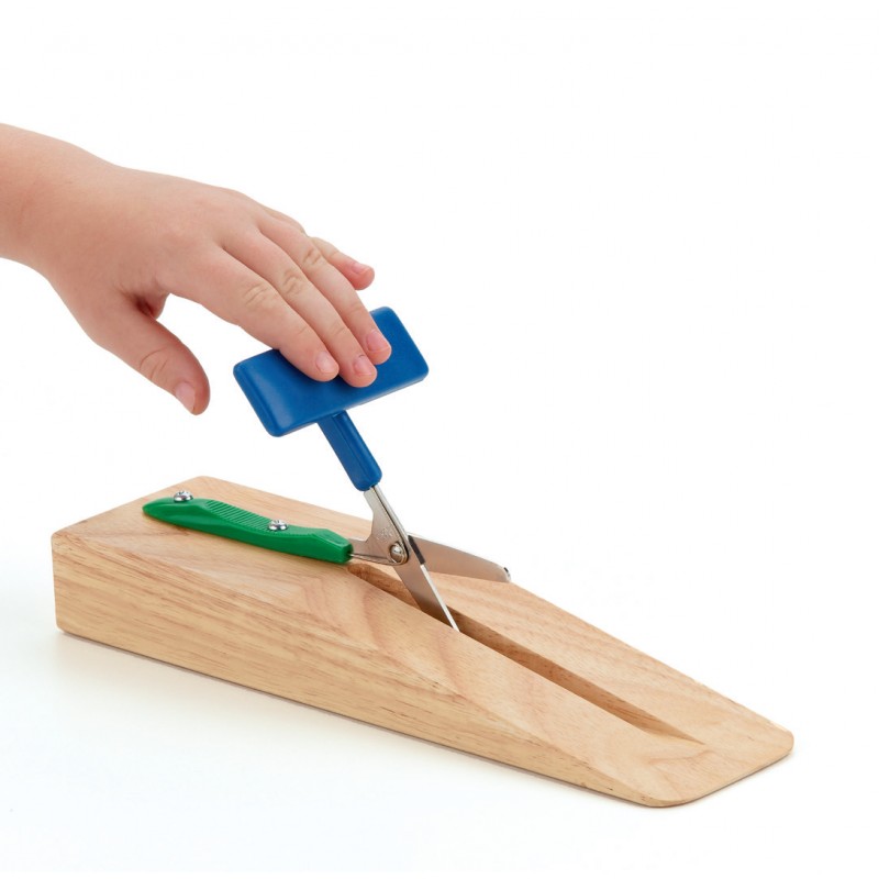 Projetado para uso por crianças com força e controle muito limitados, ou para uso com uma mão. Quer com uma base de plástico verde de cores vivas que proporciona estabilidade enquanto mantém o produto leve, ou uma base de madeira sólida para dar estabilidade final. Basta empurrar o papel ou cartão ao longo da base até a posição, depois empurre a alça em forma de “T” para cortar. A mola oculta será automaticamente reabra as lâminas em prontidão para o próximo corte. Muitas vezes é vantajoso usar os mais destros mão para manipular o papel enquanto a mão mais afetada trabalha a tesoura.