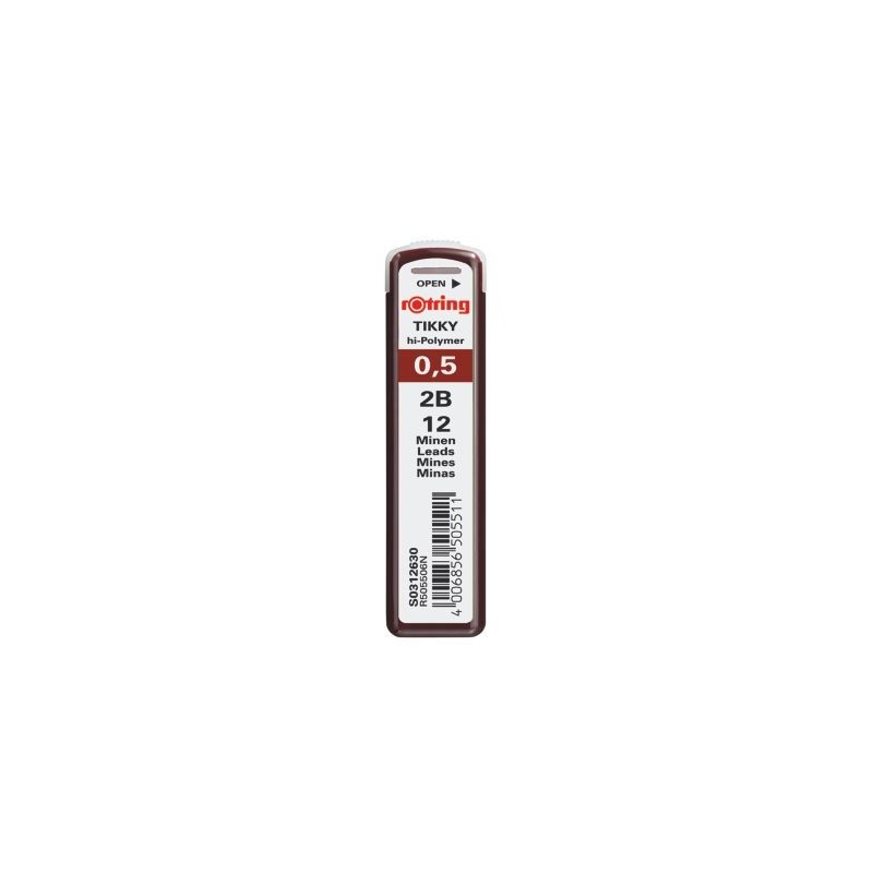 Minas Rotring 0,5mm Tubo c/ 12 minas, 2B