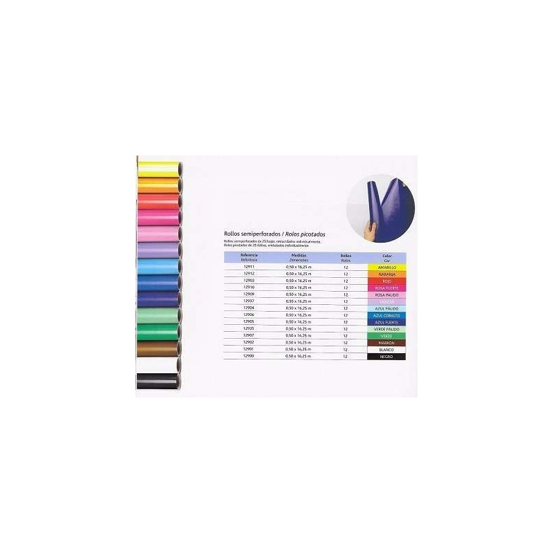 Papel de Lustro brilhante 14 cores 65grs Rolos microperfurados de fácil corte em folhas com 50X65cm. Rolo c/ 25 Fls.