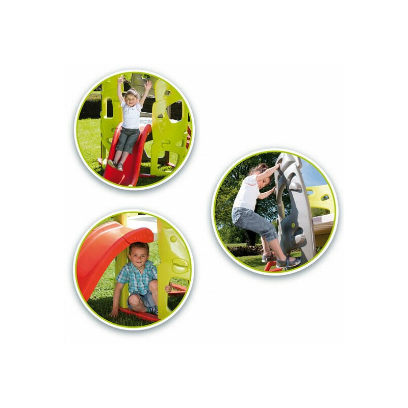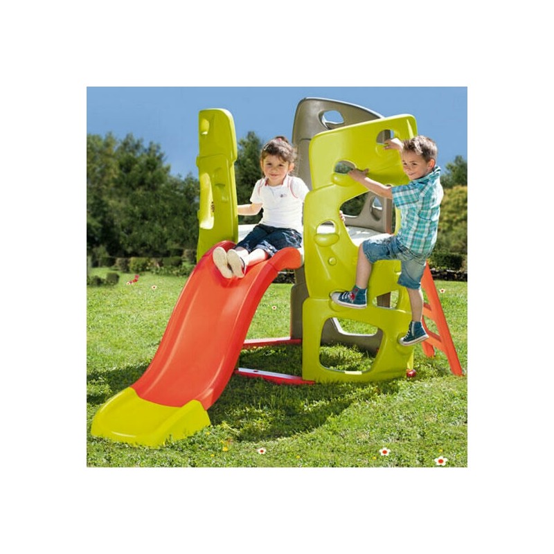 Torre multi-atividades ao ar livre. Tem 2 zonas lúdicas: Escalada + Escorrega.