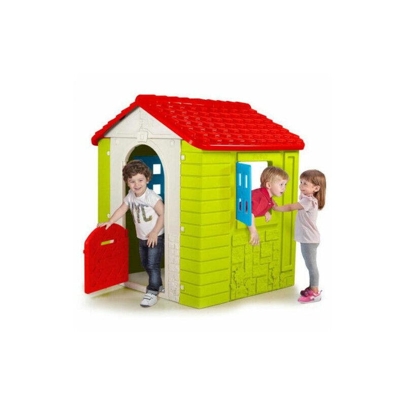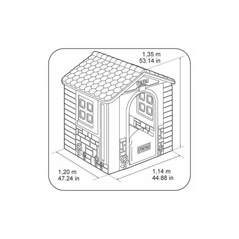 Casa de plástico medindo 120 x 114 cm e altura de 135 cm e pesando cerca de 15 kg. Fabricada em lindas cores e resistentes à passagem da luz, com janelas que abrem e fecham, porta com chave giratória, caixa de correio e varanda .