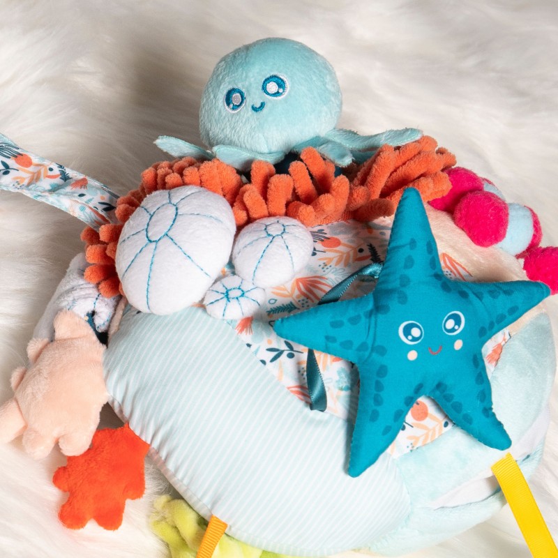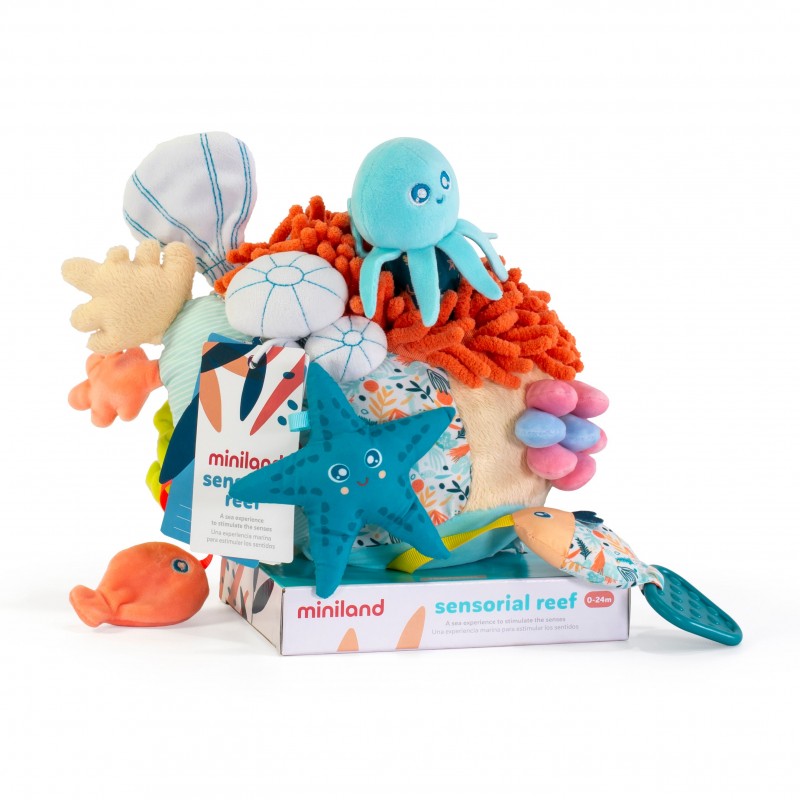 Eles vão se divertir olhando, tocando, mordendo e ouvindo este recife de coral macio.