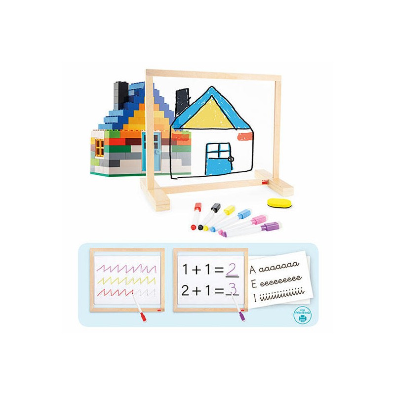 • 2 suportes de madeira para segurar a placa transparente