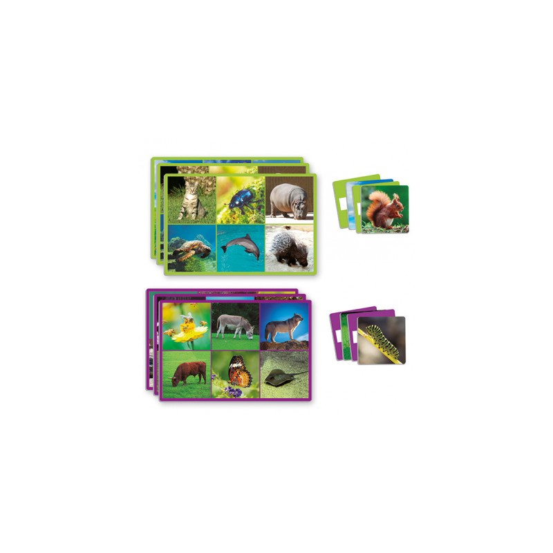 Jogo composto por: 12 fichas (cada ficha contém a imagem de 6 animais diferentes)