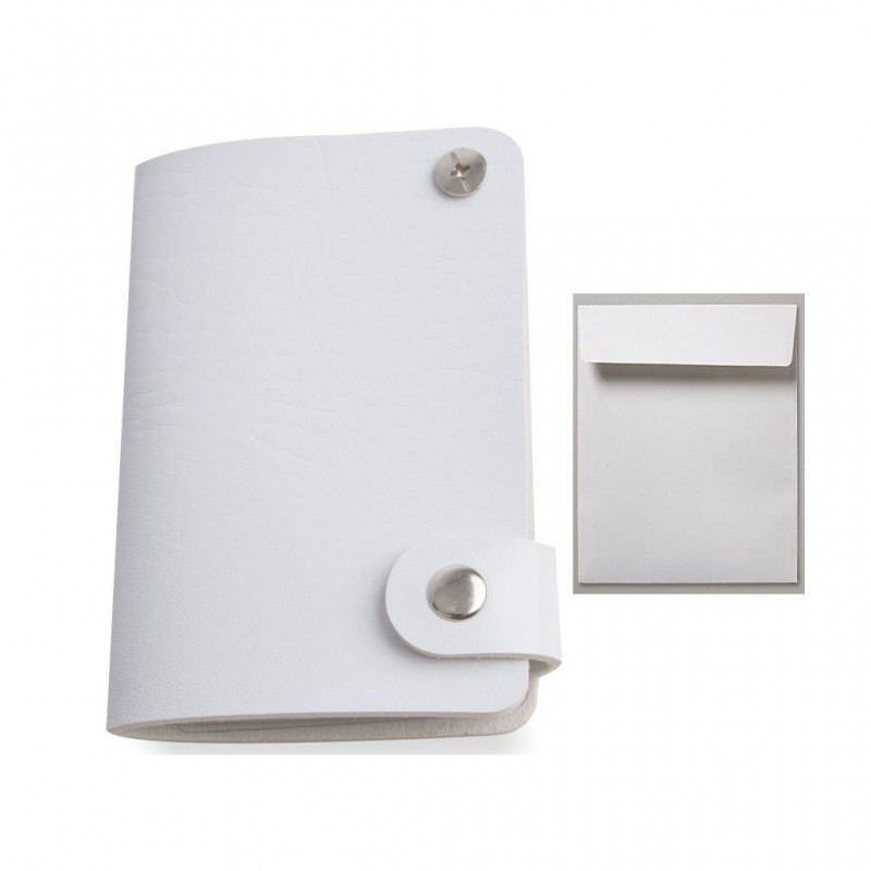 Porta cartões com 10 bolsas de PVC e saco de papel.