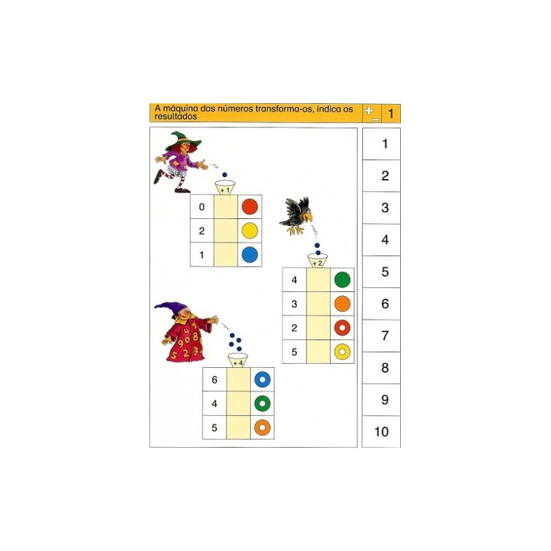 Os conteúdos abordados estão de acordo com o “Novo Programa de Matemática”, e incidem predominantemente na contagem progressiva e regressiva, nas operações de adição e subtração e no desenvolvimento do sentido algébrico. Este novo conjunto de fichas está especialmente