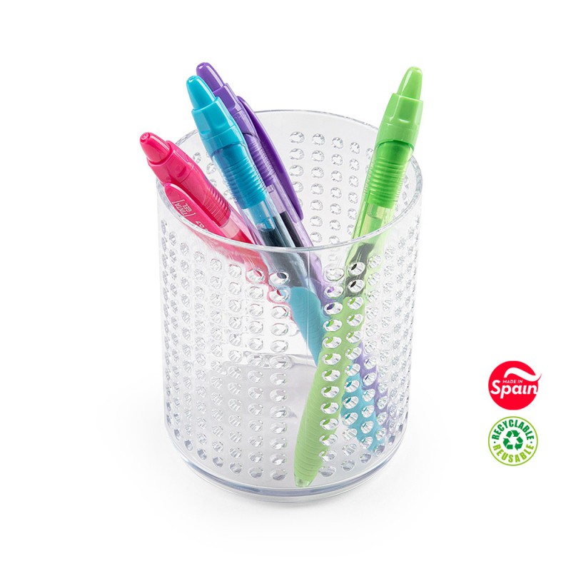 Porta Lápis Plástico Redondo Transparente