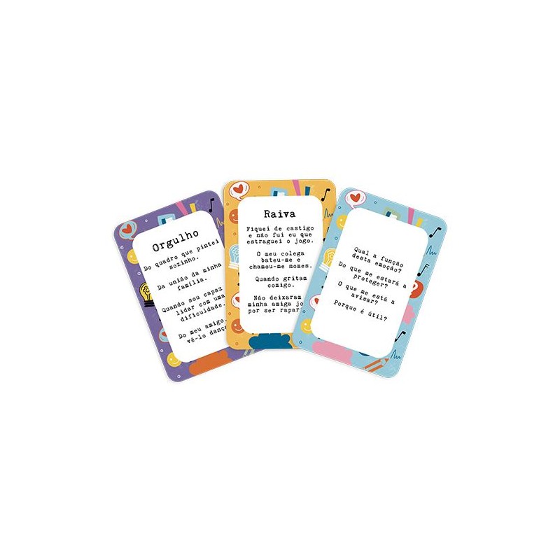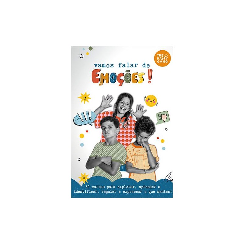 Descobre o mundo das emoções "Vamos Falar de Emoções!" da The Happy Gang. Com 32 cartas e um guia, criado com a psicóloga Rita Castanheira Alves e a ilustradora Dora Imagina, aprende a identificar, regular e expressar sentimentos. promove a inteligência emocional de forma divertida e educativa.