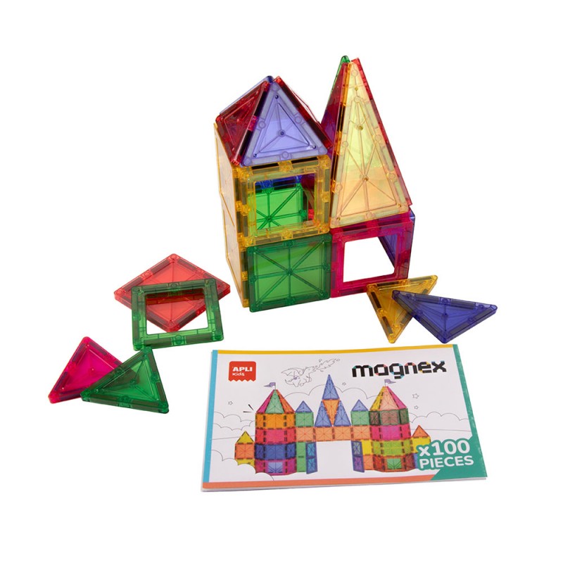 O conjunto Magnex de 100 peças é o mais completo da coleção, perfeito para construir grandes estruturas com total liberdade criativa.