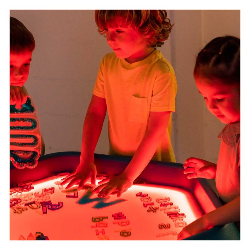 A superfície de LED é ideal para atividades sensoriais e educativas com materiais