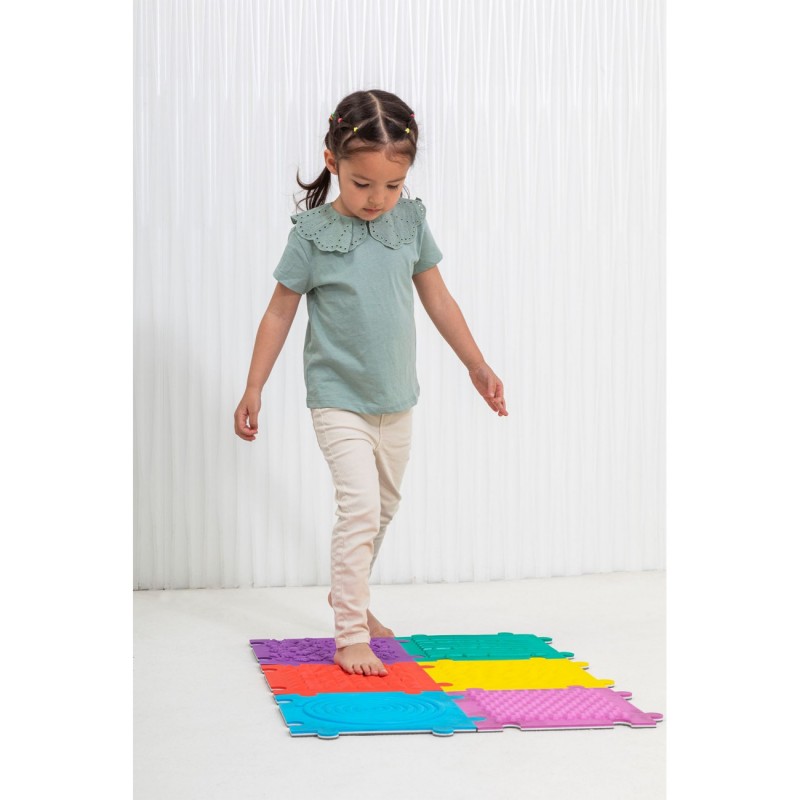 formando um piso interativo perfeito para caminhar, ficar em pé e explorar diversas texturas.