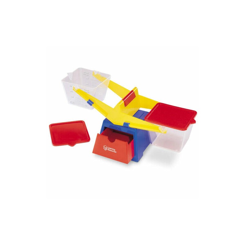 Esta balança é perfeita para medir, explorar o volume e comparar sólidos e líquidos. Os recipientes transparentes e calibrados, com tampas removíveis, comportam sólidos ou até 400 ml de líquido, permitindo que os alunos vejam o que colocaram dentro.