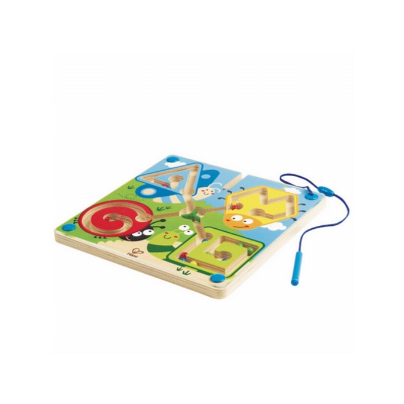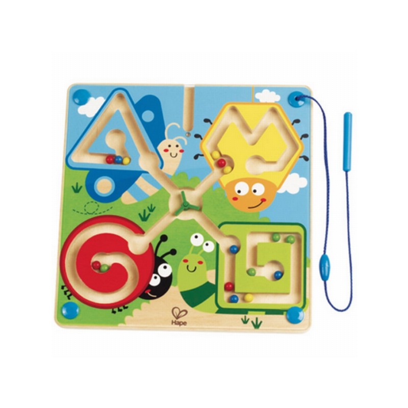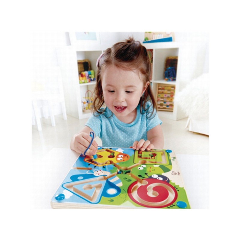 Os insectos estão com fome! Dê comida para eles! O lápis magnético, faz com que as bolas avancem através deste labirinto portátil. Escolha por onde quer começar o recorrido.