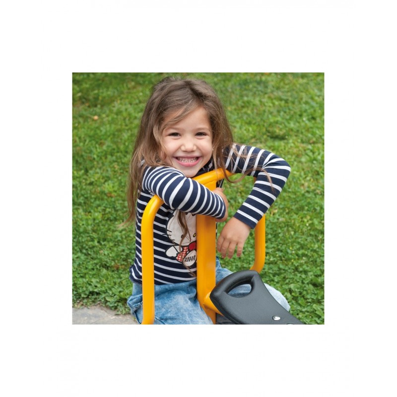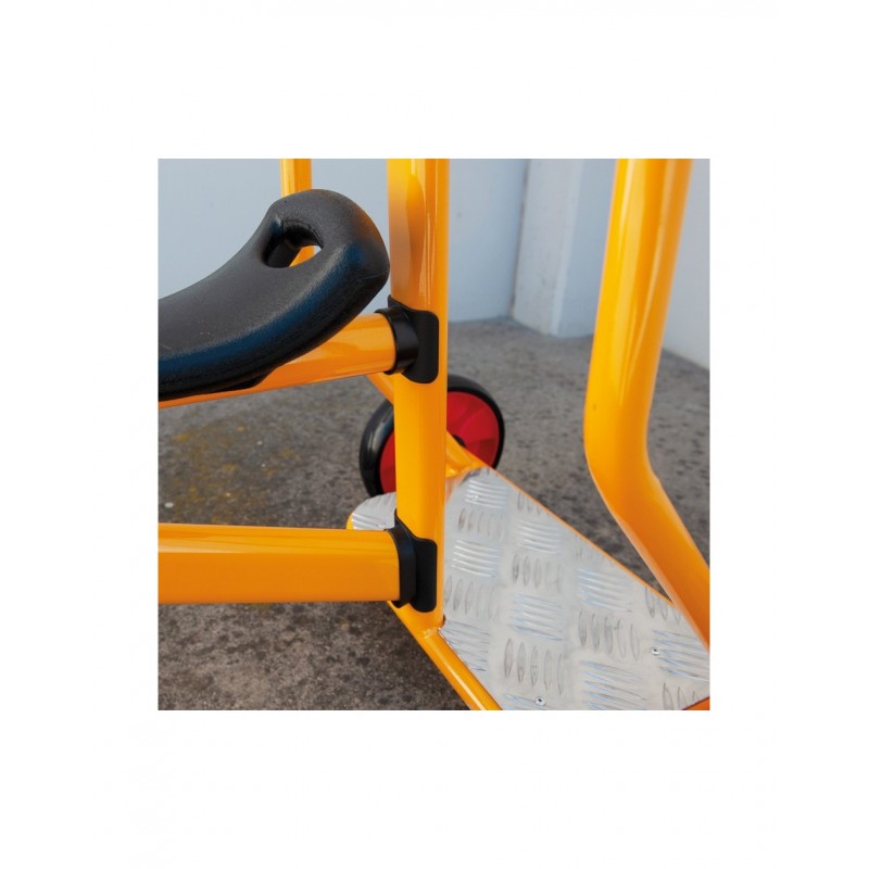 Triciclo muito resistente concebido para uma utilização intensiva. Atende às normas CE EN71. Fácil de montar e com assento regulável. Garantia de 2 anos no quadro e garfo.
